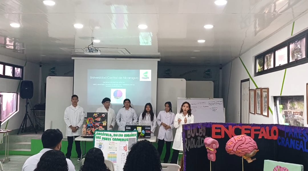 El martes 18 de noviembre de 2025, el Auditorio El Güegüense de la Sede Central fue escenario de la feria Expo–Anatomía Creativa, organizada por la Facultad de Ciencias Médicas. En este espacio, los estudiantes presentaron maquetas anatómicas elaboradas para reforzar su comprensión de las estructuras y sistemas del cuerpo humano, promoviendo el razonamiento morfofuncional, el trabajo colaborativo y la integración entre teoría y práctica en la asignatura de Anatomía. El evento también fortaleció la creatividad, la comunicación científica y las habilidades de divulgación académica, contribuyendo al cumplimiento de la Estrategia Nacional en relación con la participación de académicos en actividades orientadas al desarrollo del pensamiento lógico, matemático y científico.
